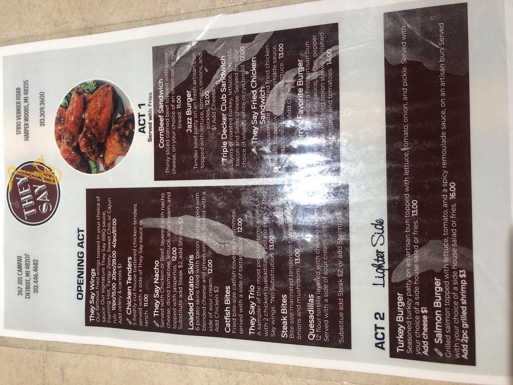 Welcome to They Say Restaurant, a vibrant addition to Detroit’s culinary scene, specializing in New American fare with a focus on chicken wings and a lively bar atmosphere. Located at 267 Jos Campau St, this black-owned establishment offers an inviting and casual setting, perfect for groups and families alike.